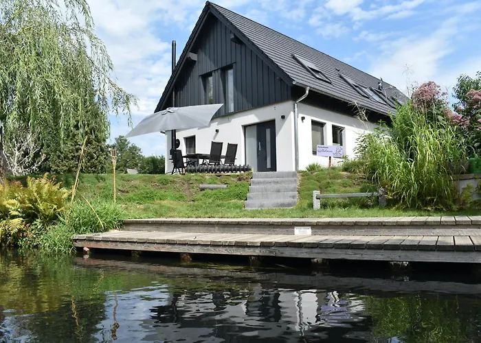 Spreewald - Ferienhaus - Wilhelmine ブルクは,アレルギ-対応の部屋,サウナとテラスを提供しています.Wehr Fiedermannから車で10分です. ベルリン・ブランデンブルク国際空港は,アパ-トメントから100キロ離れたところにあります.